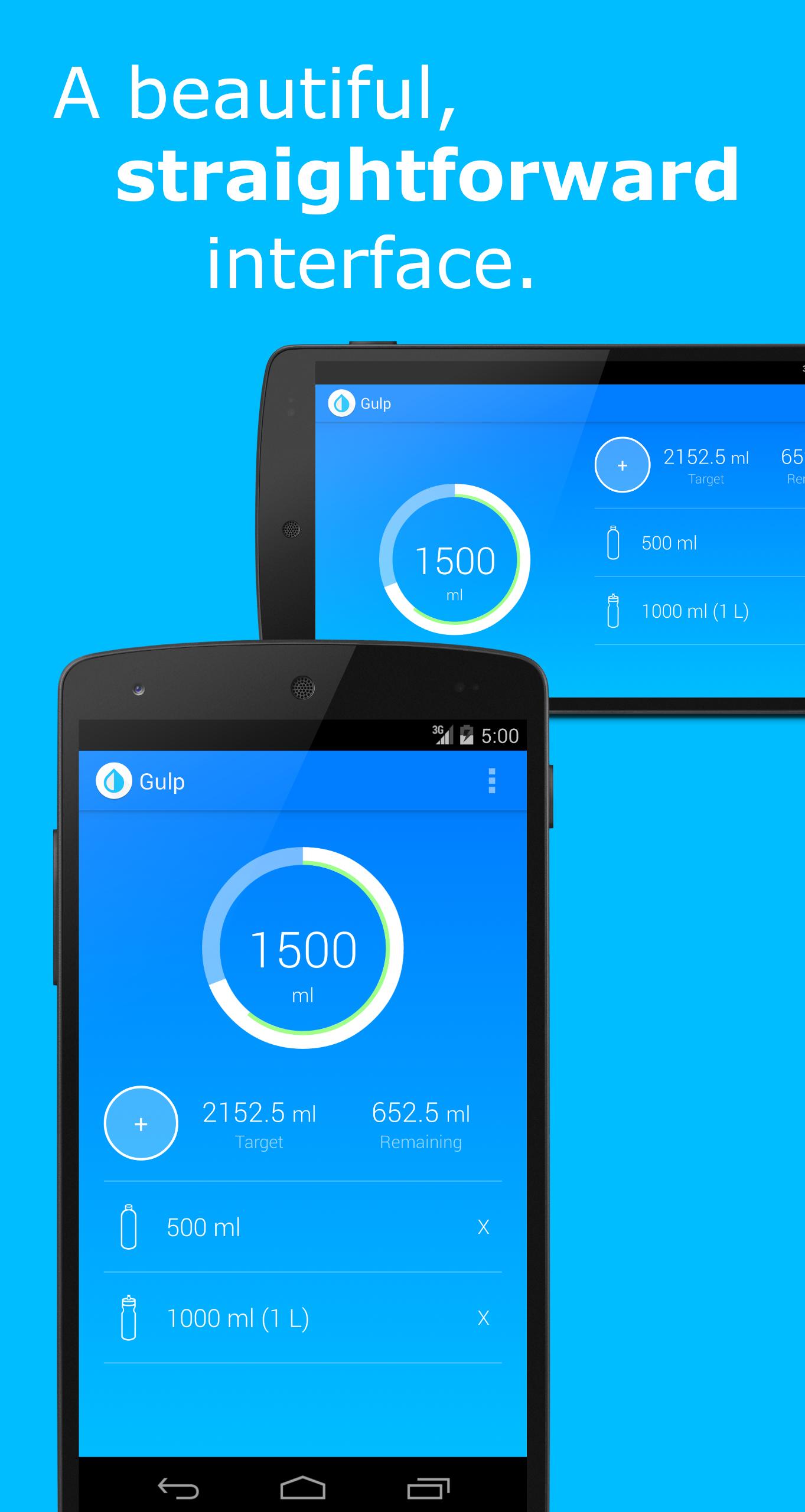 もちろん、Google Fitを使用しない場合は、毎日のアクティビティの量を手動で指定でき、Gulpは一定量の余分な水で毎日の水消費目標を埋めます!