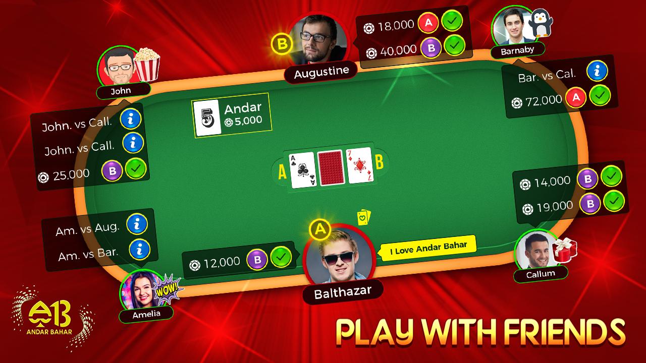 Andar Bahar Gameは、オンラインのライブ、マルチプレイヤーフリーポーカーゲームであり、世界中のいつでも家族、友人、または誰でもプレイできます。