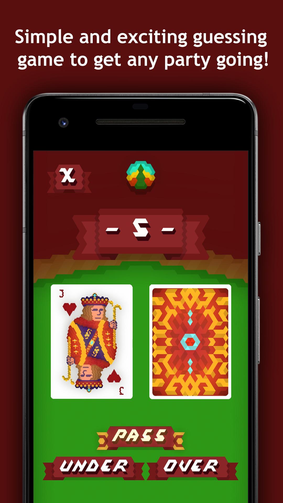Over and Under 、あらゆる機会、場所、時間のための素晴らしい飲酒ゲーム。 2人だけでプレイするか、他の10人までプレイするときに渡してください!あなたが飲みたい量に応じて、さまざまなモードで遊ぶ!シンプルで速いですが、それでもエキサイティングで非常に楽しいです!
