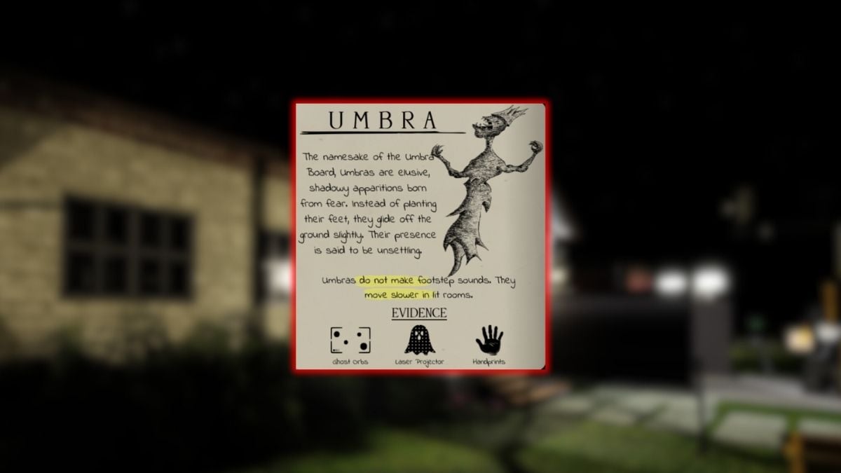 As mentioned previously, the Umbra is a ghost similar to the Shado w. Это не издает ни одного постороннего звука при движении, а также движется медленнее в освещенных комнатах. But, it moves quicker when there's no light in a room. Точно так же вы можете заметить это очевидное изменение скорости, особенно во время охоты. You can also get Ghost Orbs, Laser Projections, and Handprints evidence just to be sure.