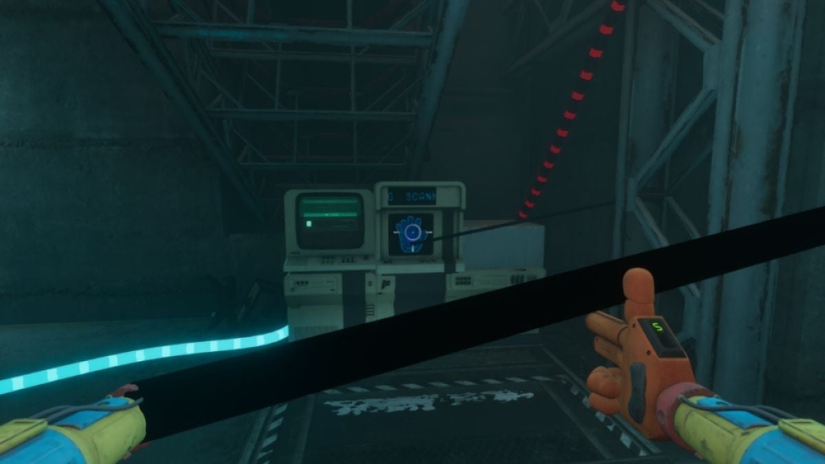 4. Then, pick up the Blue Glove lying on the floor with your right glove, and take it to the Scanner in the 'Temperature Control' area. That will stop the gas and open the door.