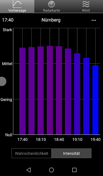 啟動應用程序後,將自動確定當前位置,然後在接下來的兩個小時內加載相應的預測概率和強度。